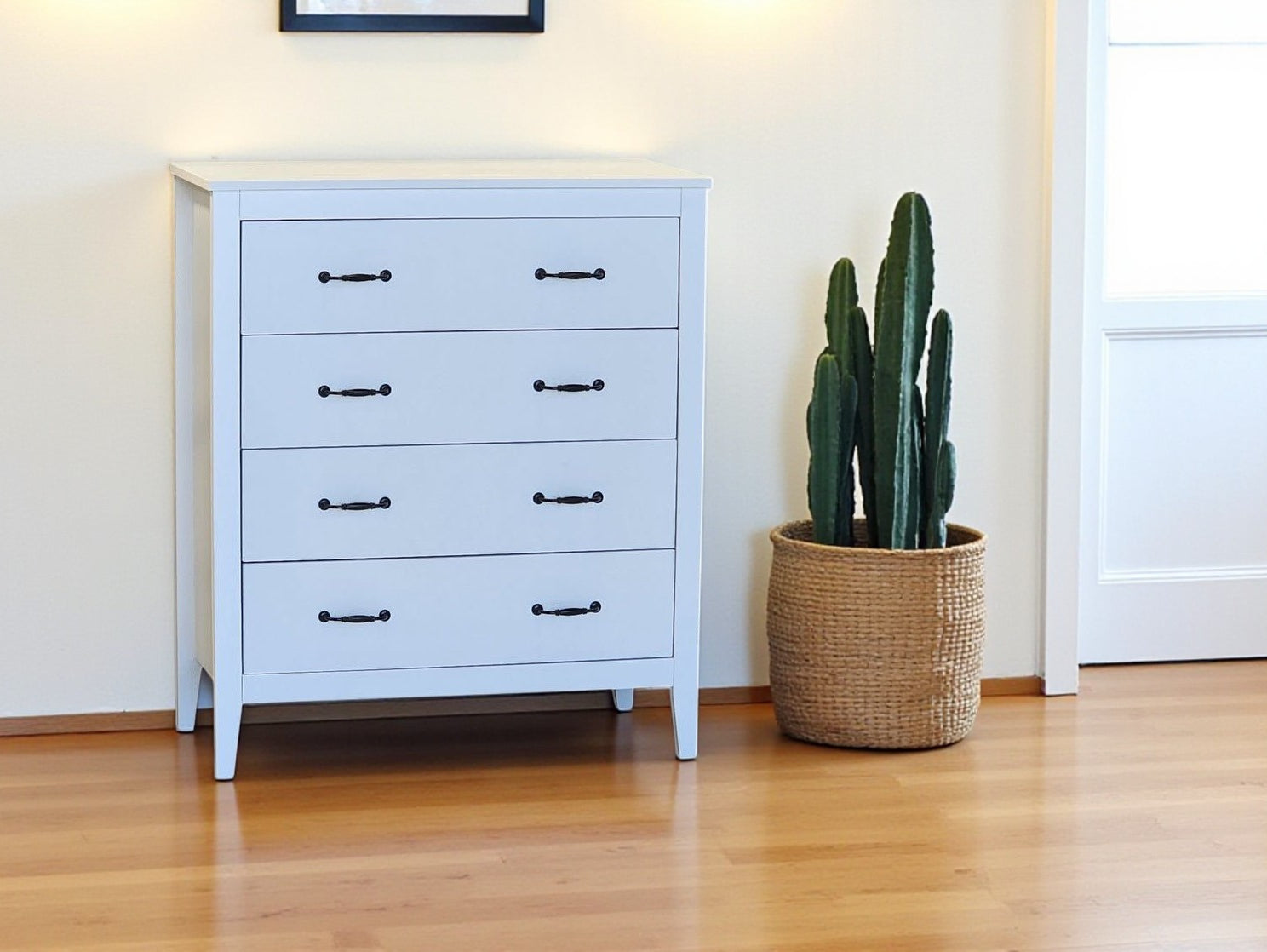 A cosy storage solution for clothing, media, books, and more, this is a chest you can truly make your own. The gentle two-tone black / white colour theme is easy to mix and match with your existing décor, while four drawers provide plenty of storage space.